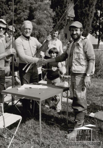 Gianfranco Pellizzoli a una gara con la sezione pesca del Cral aziendale. Anni '70