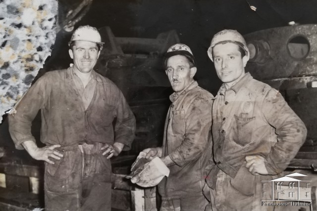 Adriano Cavalleri, dipendente Tenaris, che ci ha donato questa fotografia, racconta che suo padre, ritratto nella fotografia con alcuni colleghi, ha lavorato nel reparto laminatoio 4 dello stabilimento di Dalmine.