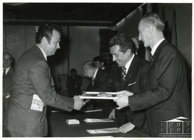 In questa fotografia, in particolare, il signor Delli viene premiato per i suoi 30 anni di lavoro in azienda.