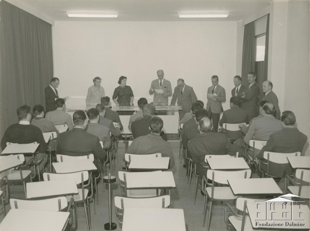 Antonietta Faiella con i corsisti della scuola tecnica aziendale. 1963