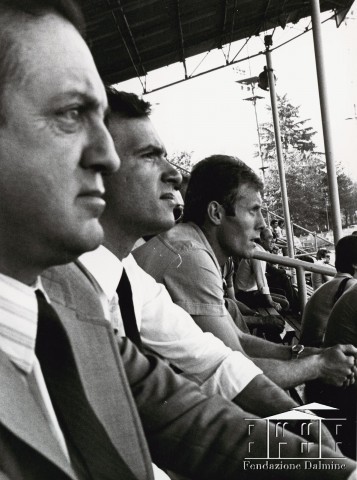 Spettatori in tribuna per il torneo di calcio aziendale. 1981
