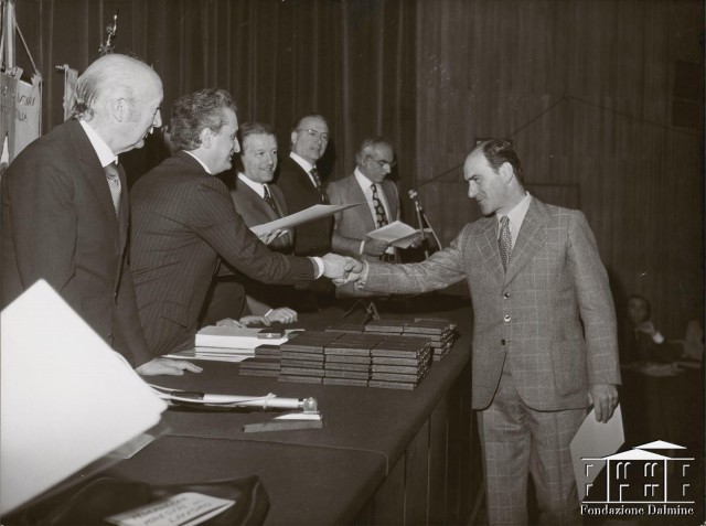 Emilio Renato Cattaneo premiato per l'anzianità di servizio. Anni '70