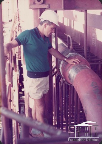 Giuseppe Boffetti in cantiere per la costruzione di una centrale elettrica. 1985
