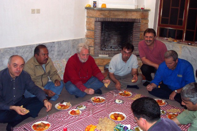 Graziano Carnevali insieme ad alcuni colleghi durante una cena tipica iraniana 2004