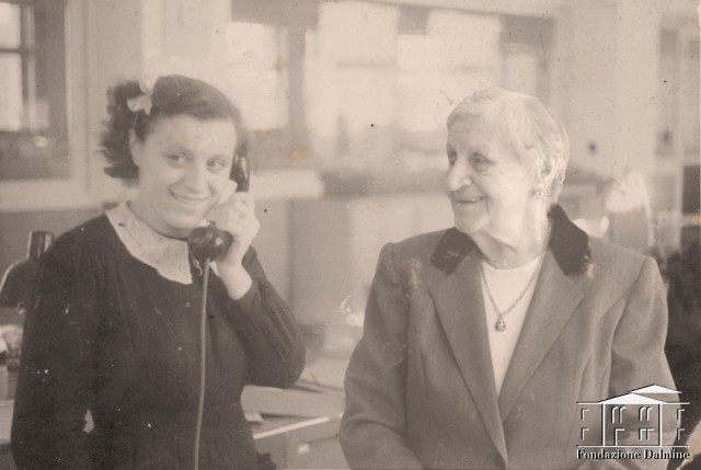 Maria Elisa Corti returns to her desk in the payment department office , just as she did when young in 1944.