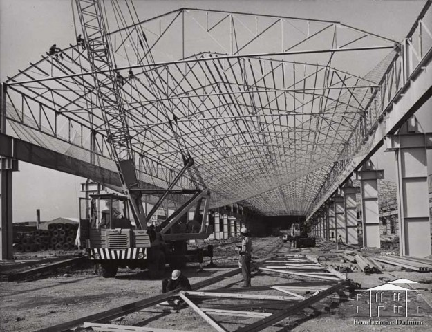 Costruzione del capannone per l'impianto Fretz-Moon.