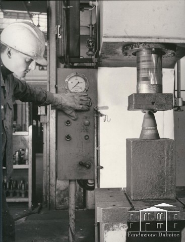 Macchina per prove di schiacciamento e svasatura dei tubi. Prima metà anni '70