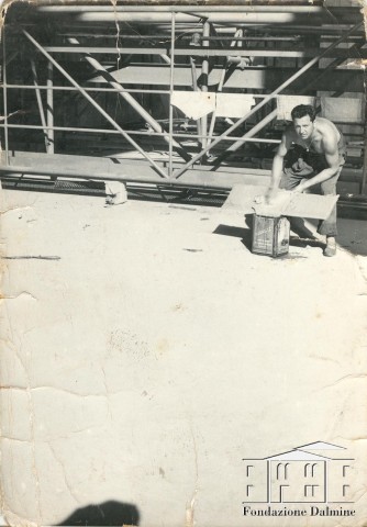 Angelo Barcella al lavoro in un cantiere. 1960