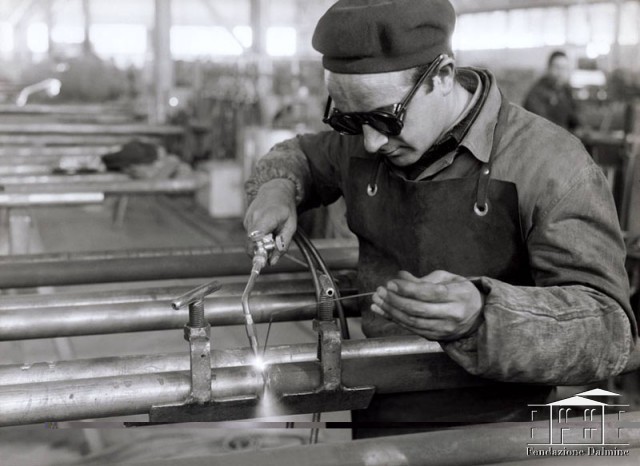 Operatore al lavoro di saldatura Seconda metà anni '50