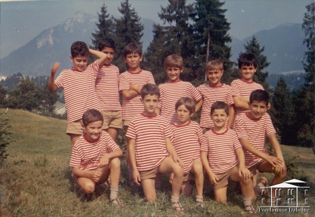 Silvio Cattaneo con i compagni della colonia alpina Mario Garbagni. 1970