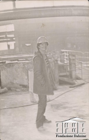 Tereza Sarca (electrical maintenance engineer) in the descaling workshop, Cold Drawing Plant. 1984