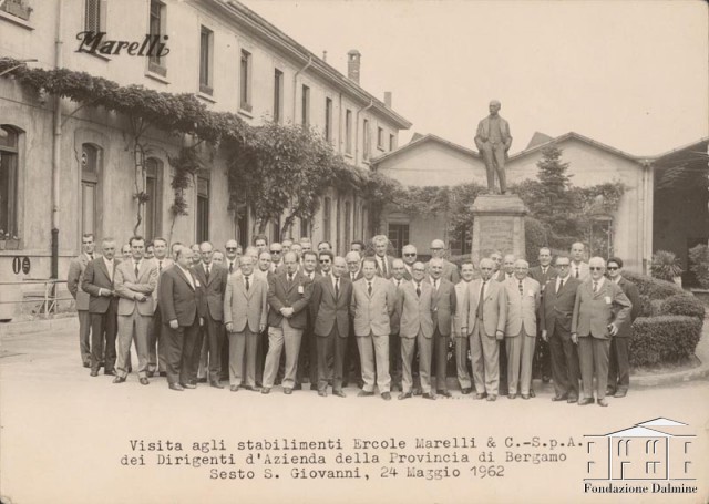 In questa fotografia, in particolare, è ritratto insieme ai dirigenti d'azienda della provincia di Bergamo in visita agli stabilimenti Marelli.