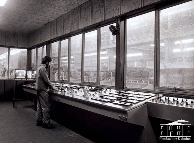 Cabina di comando dell'impianto di saldatura Fretz Moon. 1974