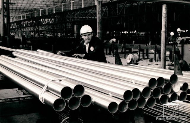 Controllo tubi nel reparto finiture a freddo. Anni '60