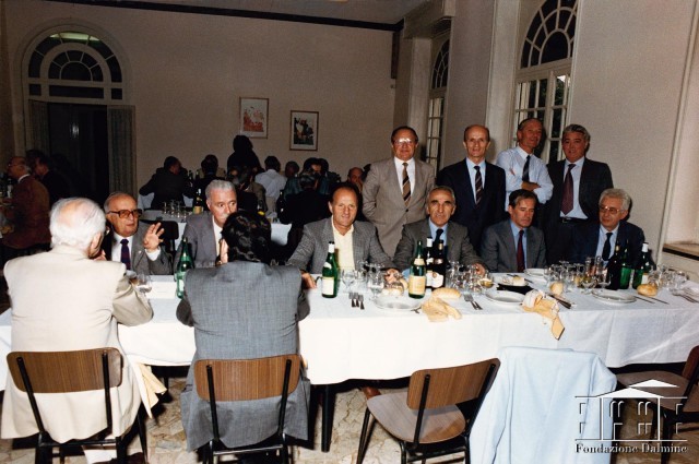 Elia Grazioli a cena con gli ex allievi della scuola tecnica aziendale. 30 settembre 1987