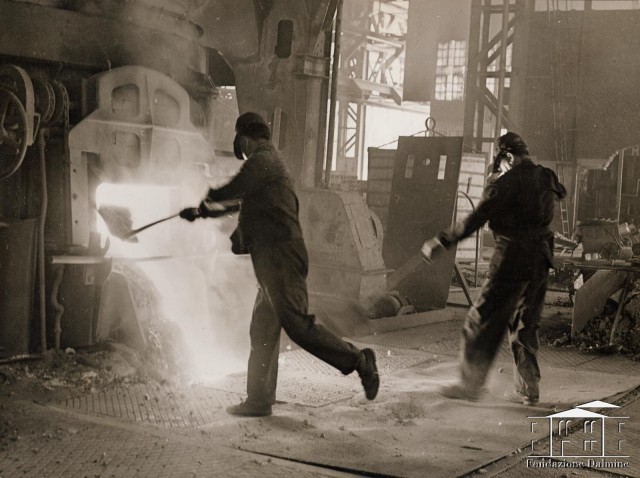 Affinazione dell'acciaio nel forno dell'acciaieria. Seconda metà anni '50