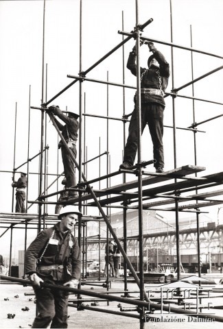 Operatori del reparto carpenteria metallica al lavoro. Anni '60