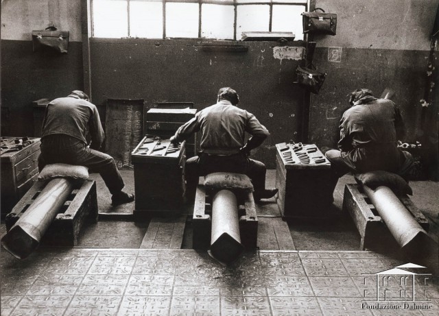 Punzonatura nel reparto bombole. Seconda metà anni '60