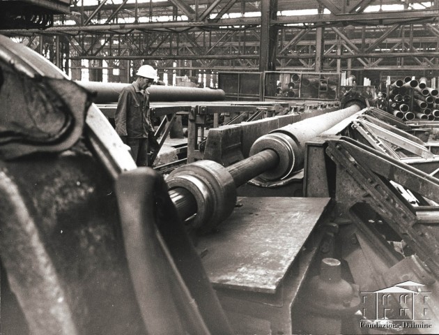 Al lavoro nel reparto di laminazione e aggiustaggio. 1960
