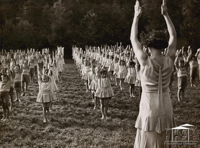Lezione di ginnastica alla colonia montana M.Garbagni. Anni '50