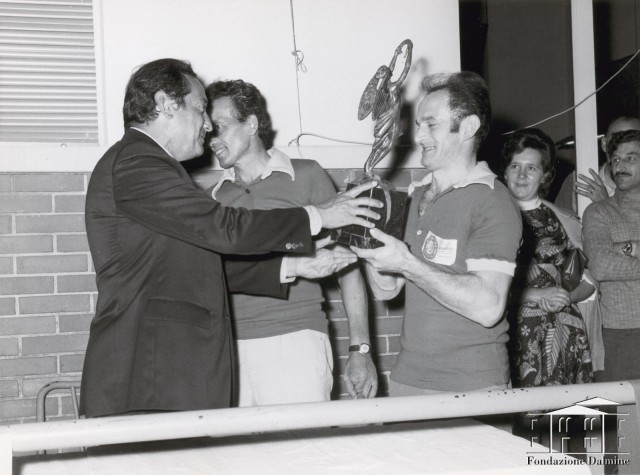 Premiazione del torneo regionale di bocce a coppie del Trofeo Presidenza. 1975