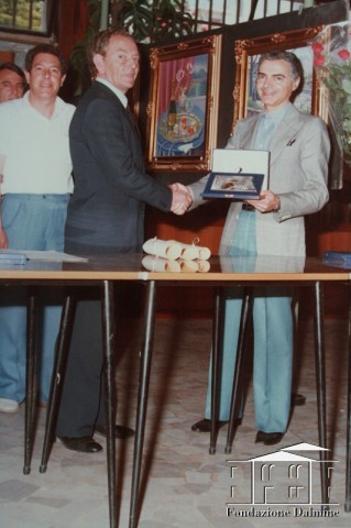 Franco Nappo riceve un riconoscimento al premio di pittura aziendale. Anni '70