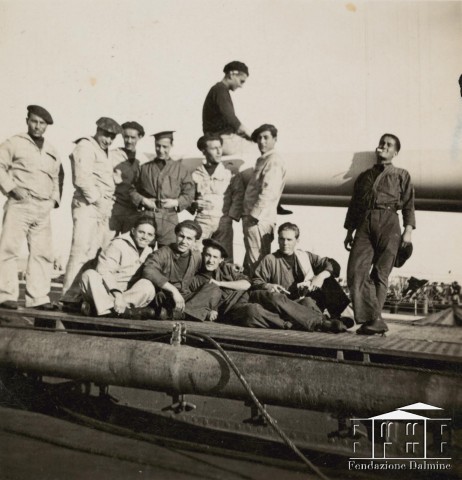 Carlo Rosti in una foto di gruppo dell'equipaggio del Regio Incrociatore Gorizia. Seconda metà anni '30