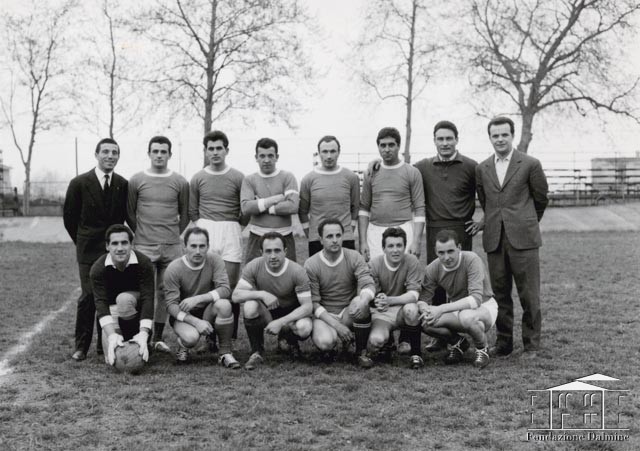 Alberto Vitali con i colleghi al torneo di calcio aziendale. 1966