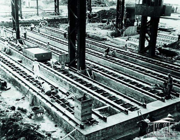 Cantiere per la costruzione delle fondamenta dell'acciaieria. 1958