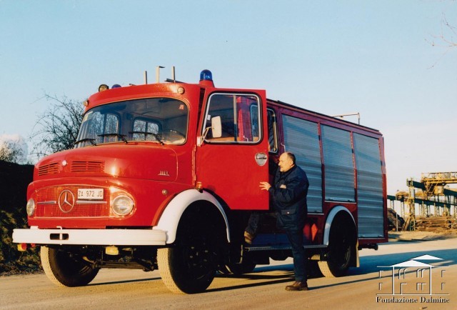 In questa fotografia, in particolare, è ritratto durante un’esercitazione che si svolgeva una volta al mese in quest'ultimo reparto, in cui una coppia di operatori era tenuta a verificare il perfetto funzionamento di tutti gli strumenti del camion antincendio in dotazione.
