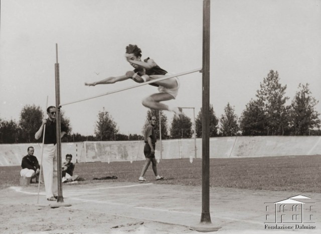 Salto in alto al velodromo costruito dall'azienda. Anni '40