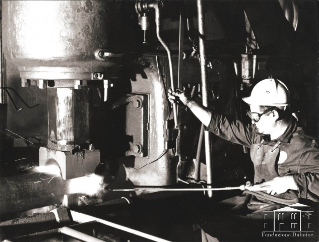 In questa fotografia, in particolare, l’operatore sta lavorando con il maglio da 125 kg.