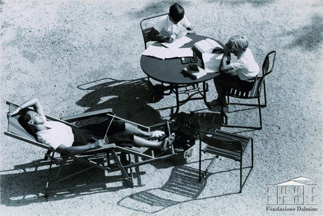 Elina Rocca e i suoi due figli nel giardino della loro abitazione accanto allo stabilimento. La fotografia, scattata da Emilio Taddei, ha partecipato a un concorso fotografico. Il titolo originale della fotografia è appunto: "I compiti delle vacanze".