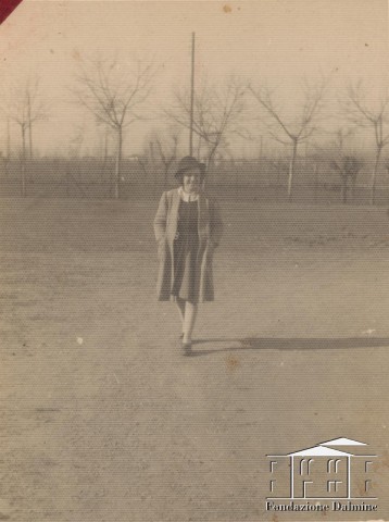 Maria Elisa Corti in uno dei cortili aziendali. 1944