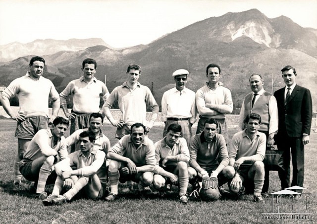 Squadra di calcio del Cral di Costa Volpino in trasferta. 1962