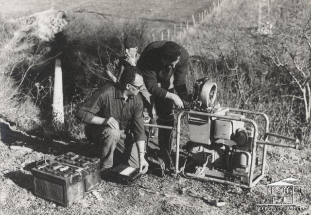 Operatori al lavoro con il gruppo elettrogeno. 1960