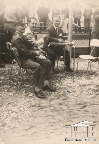 Pietro Salvetti e gli amici si godono un aperitivo nel cortile del dopolavoro aziendale. Anni '50
