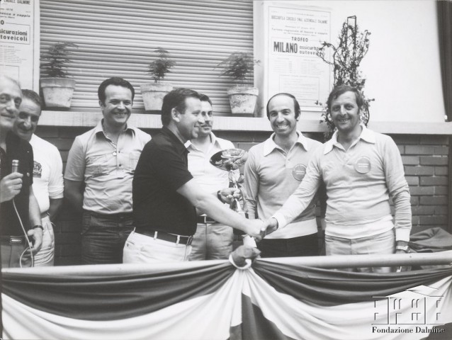 Premiazione del torneo regionale di bocce a coppie del Trofeo Milano assicurazioni autoveicoli. 1976