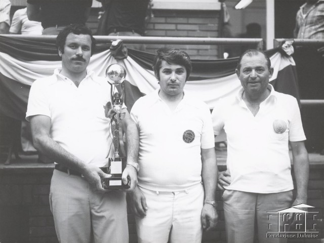 Premiazione del torneo regionale di bocce a coppie del Trofeo Milano assicurazioni autoveicoli. 1976
