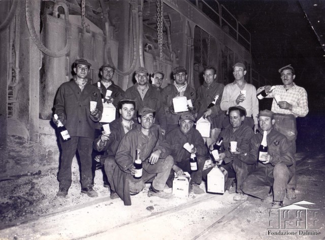 Gruppo di operai del reparto colata continua 1961 ca.