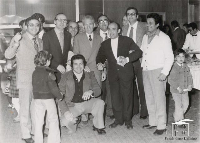 Pasquale Farella con i colleghi alla festa del Gruppo Lavoratori Anziani. 1974