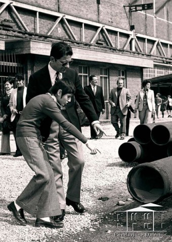 Questa fotografia è stata scattata il giorno della Festa dei lavoratori. Per l'occasione l'azienda organizzò la celebrazione della Santa messa nello stabilimento e un porte aperte per permettere ai lavoratori, alle famiglie e alla cittadinanza di visitare gli impianti produttivi.
