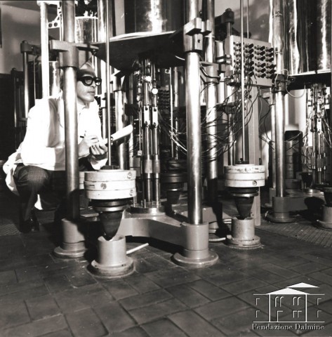 In questa fotografia, in particolare, Learco Cavagna è ritratto nella sala prove di scorrimento a caldo.