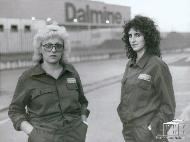 In questa fotografia le due donne ritratte sono le prime operaie assunte in azienda nei reparti produttivi. Insieme a loro vennero assunte altre 12 donne, i giornali dell'epoca che scrissero di questo fatto le chiamvano "Le magnifiche 14".