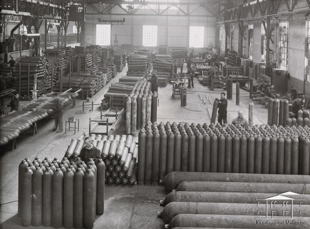 Operazioni di collaudo nel reparto bombole. Anni '40
