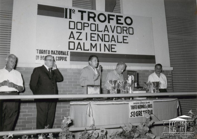Premiazione del torneo nazionale di bocce a coppie del 2° Trofeo dopolavoro aziendale. Anni '70
