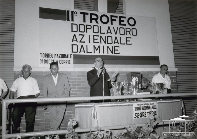 Premiazione del torneo nazionale di bocce a coppie del 2° Trofeo dopolavoro aziendale. Anni '70