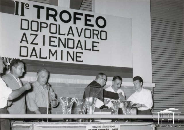 Premiazione del torneo nazionale di bocce a coppie del 2° Trofeo dopolavoro aziendale. Anni '70