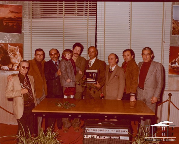 In questa fotografia il signor Ianni è ritratto con i colleghi durante le premiazioni per un evento sportivo aziendale.